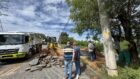 A interdição é devido ao rompimento de uma adutora e que compromete o barranco que divide as duas vias; os agentes de zeladoria e manutenção trabalham para desviar o fluxo…