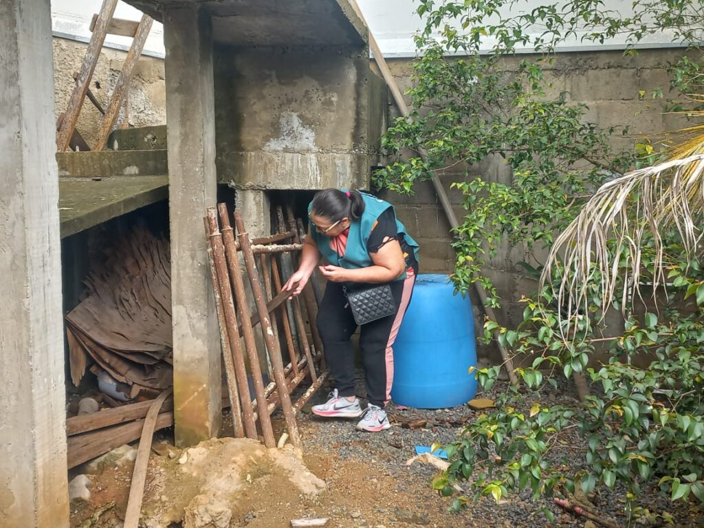 Com um cronograma intensivo de ações de combate à dengue, a Prefeitura realizou nesta quarta-feira (5) um mutirão nos bairros pertencentes ao perímetro da Unidade de Saúde Pinheirinho. Os agentes de endemias, agentes comunitários de saúde e servidores voluntários fizeram vistoria casa a casa para identificar nos quintais criadouros e orientar os moradores sobre os cuidados para evitar focos de dengue.