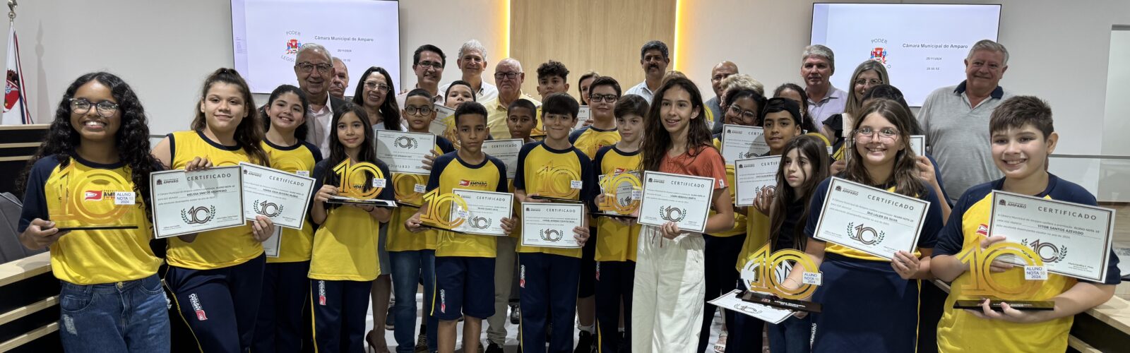 Vinte estudantes das escolas municipais foram reconhecidos pelo seu esforço e desempenho acadêmico com o prêmio “Aluno Nota 10”, durante uma sessão ordinária realizada nesta segunda-feira, na Câmara Municipal de Amparo. A premiação, instituída pelo Decreto Legislativo nº 652/2022, celebra o comprometimento e a dedicação de alunos do 5º ano do ensino fundamental da rede pública municipal.