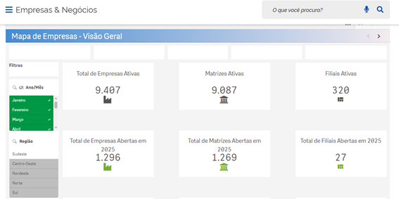 | Empresas abertas | 1.296 | 1.052 | 244 | 81% |