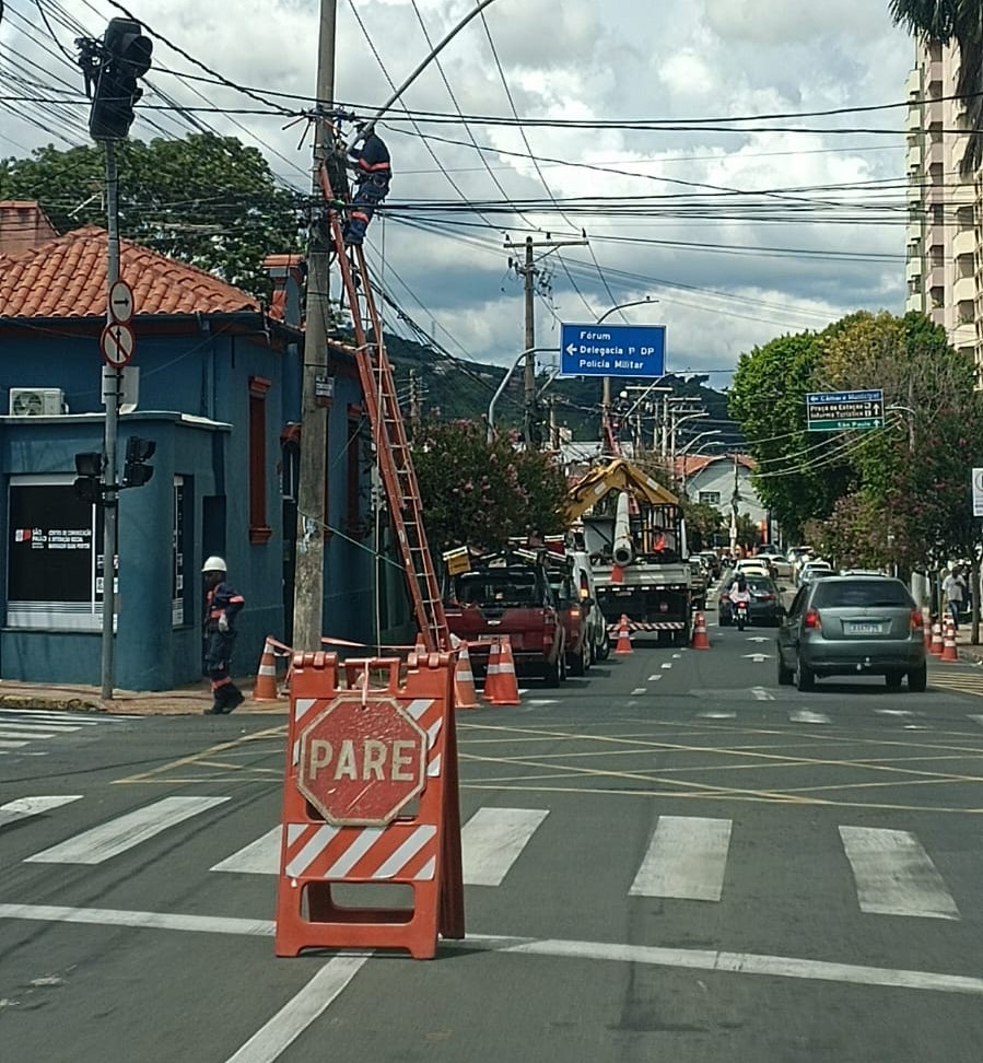 Parte das vias está interditada devido à manutenção de alguns postes pela CPFL. A equipe de trânsito da Prefeitura de Amparo está no local para sinalizar as vias.