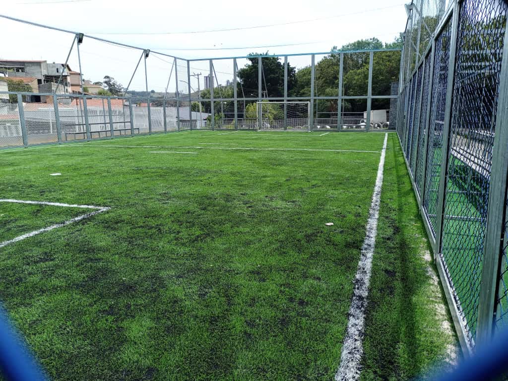 A quadra sintética para a prática de futebol Society recebeu novo gramado, com recursos próprios e passou por melhorias.