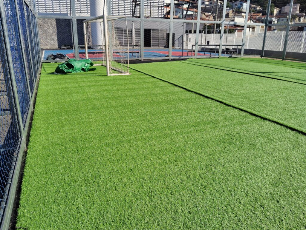 Com recursos próprios, a Prefeitura está trocando o gramado sintético da Areninha “José Carnier”. O antigo gramado havia sido instalado há 5 anos e com o tempo necessitava de um novo piso.