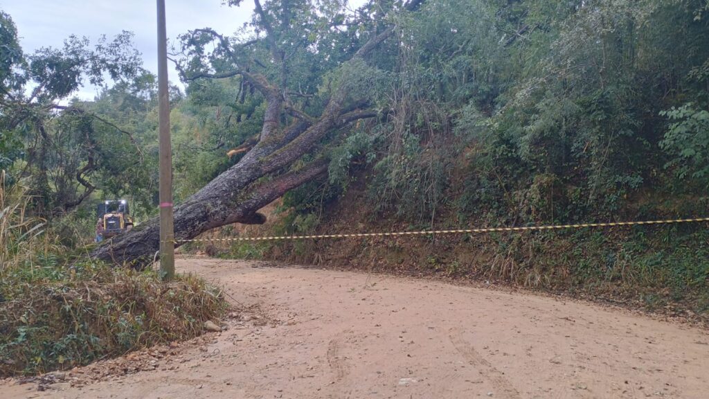 Equipes da secretaria de Zeladoria Pública e conservação e de Vias Urbanas e Rurais, Defesa Civil e Corpo de Bombeiros de Amparo estão na região para a retirada de uma árvore de pelo menos 15 metros de altura que caiu na manhã de terça-feira, 28.