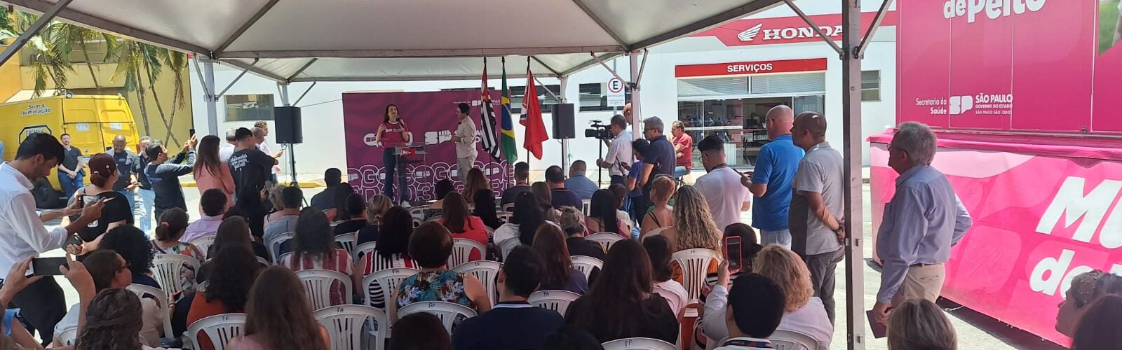 Nesta segunda-feira, 25 de novembro, aconteceu o evento de abertura de uma importante ação voltada para a saúde, o empreendedorismo e a autonomia das mulheres na cidade de Amparo. Realizada na Praça Pádua Salles, a iniciativa é fruto de uma parceria entre o Estado de São Paulo e a Prefeitura do município, com o objetivo de promover o diagnóstico precoce do câncer de mama e incentivar a qualificação profissional e a independência financeira das mulheres da região.