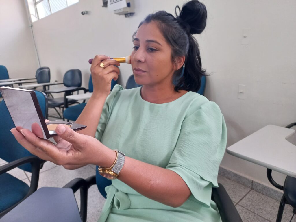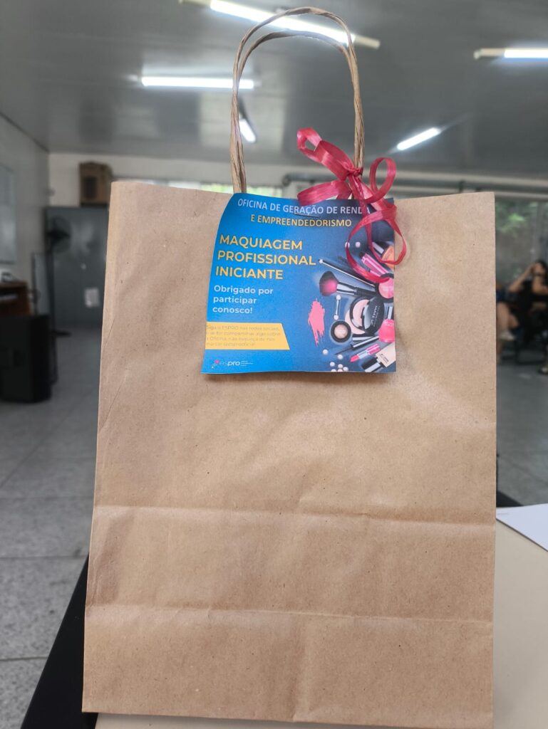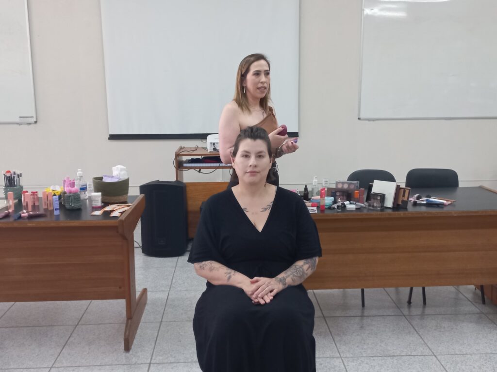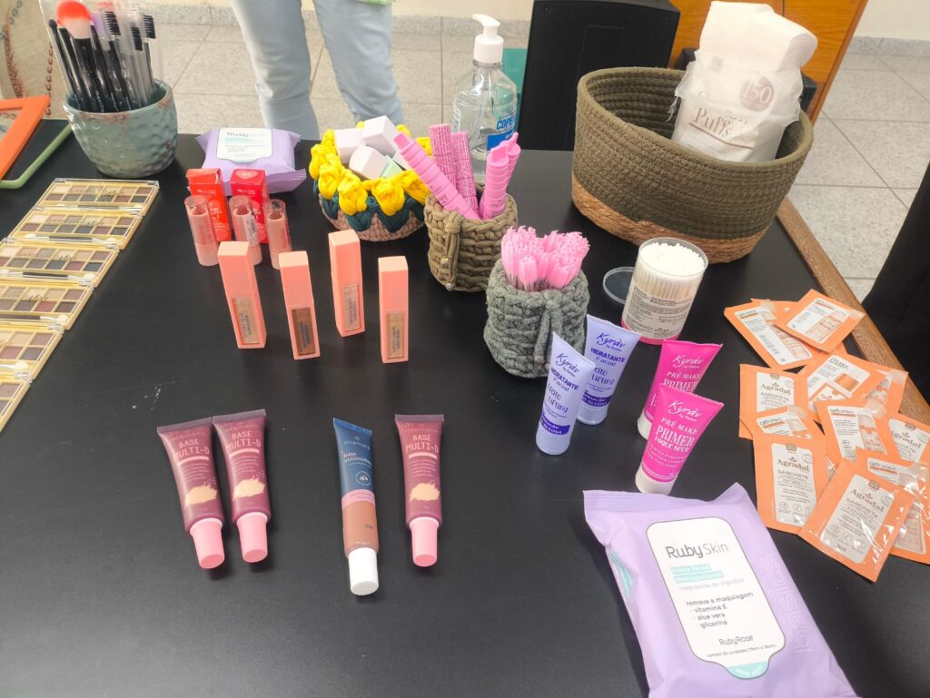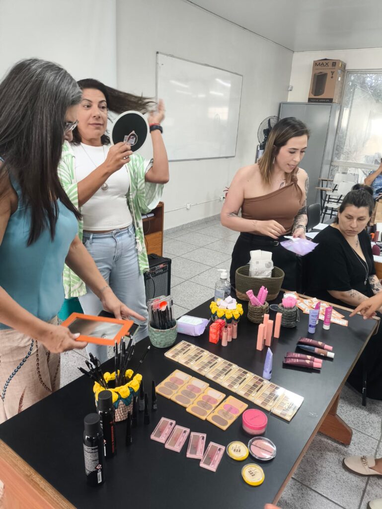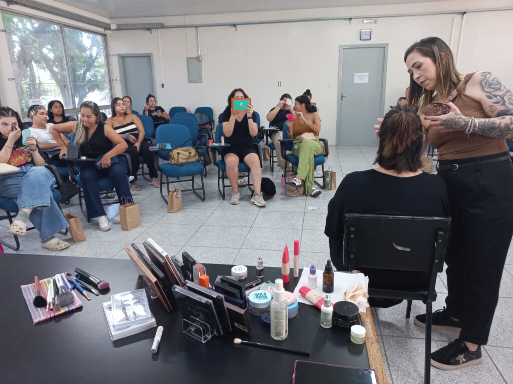 A oficina é ministrada em apenas um dia, pela instrutora do Espro, Luiza Modesto, e cada aluna recebeu um kit de maquiagem para fazer o curso e levar para casa para colocar em prática o aprendizado.