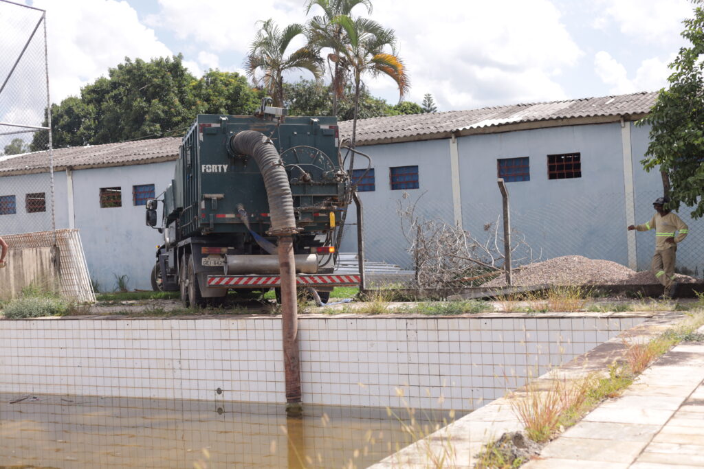 A Secretaria de Zeladoria e Manutenção de Vias Urbanas e Rurais de Amparo finalizou na tarde de hoje, 10, a remoção de água da piscina inativada do Centro Esportivo “João Baptista de Campos Cintra” – o Bolão, no Jardim Camandocaia.