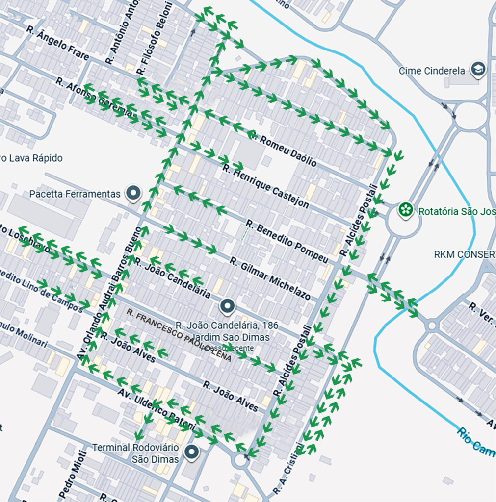 Rua Alcides Postali somente – sentido único Terminal São Dimas